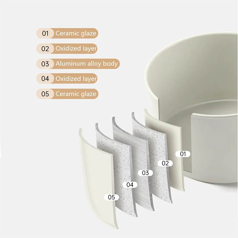 این ماهیتابه از آلومینیوم سبک و مقاوم ساخته شده و سطح داخلی آن به طور کامل با یک لایه سرامیک نچسب پوشانده شده است. این پوشش: