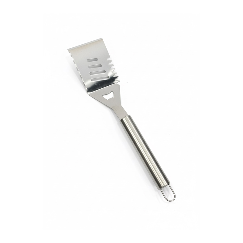 کفگیر بزرگ دارای لبهی تیغهدار است و میتوانید برای جدا کردن مواد، برشهای سبک و جابهجایی غذا از آن استفاده کنید.
