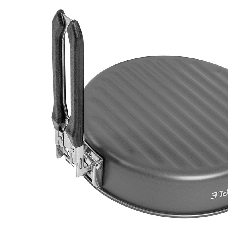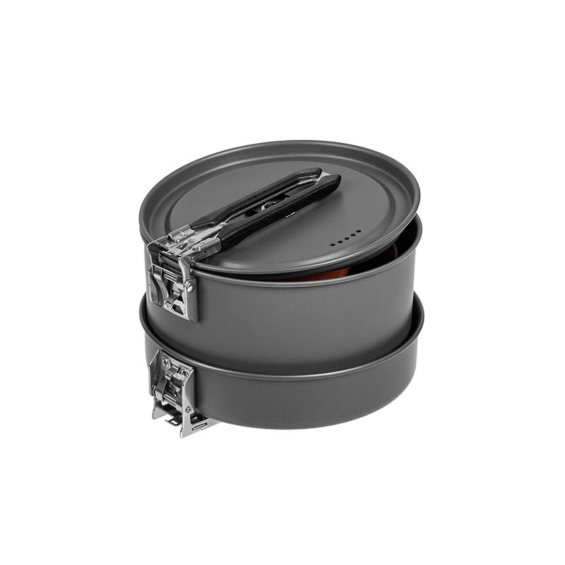 ظروف این ست دارای دستههای تاشو با قفل قابل اطمینان هستند. این طراحی هم در زمان استفاده ایمنی بیشتری ایجاد میکند و هم هنگام جمعکردن، حجم کلی مجموعه را به حداقل میرساند.