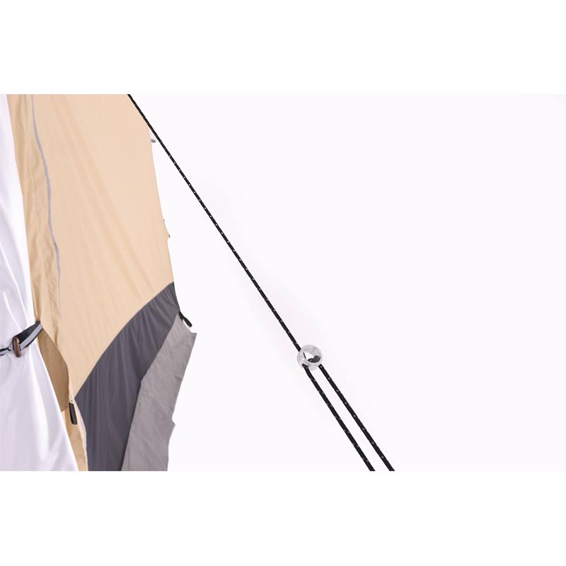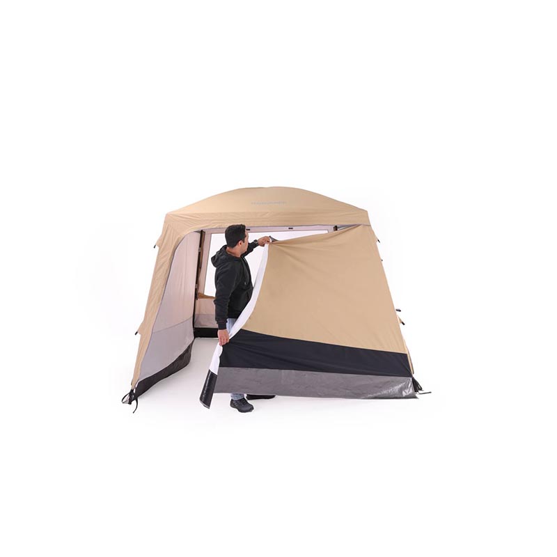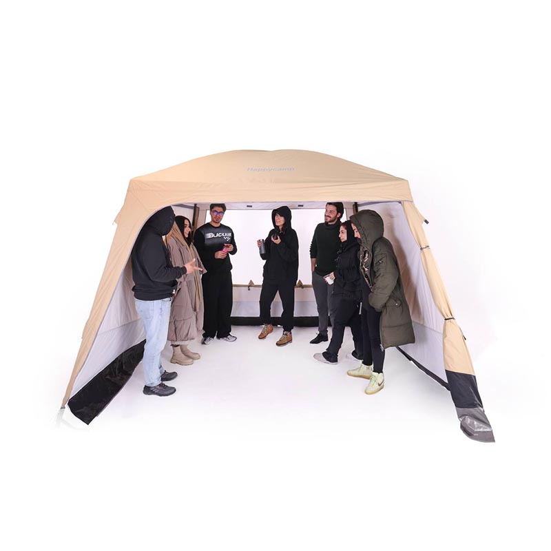 این محصول با ابعاد 300 × 300 × 210 سانتیمتر فضای پوششی گستردهای ایجاد میکند که برای اسکان چند نفره، آشپزی، استراحت و ایجاد سایه در کمپ کاملاً کافی است.
