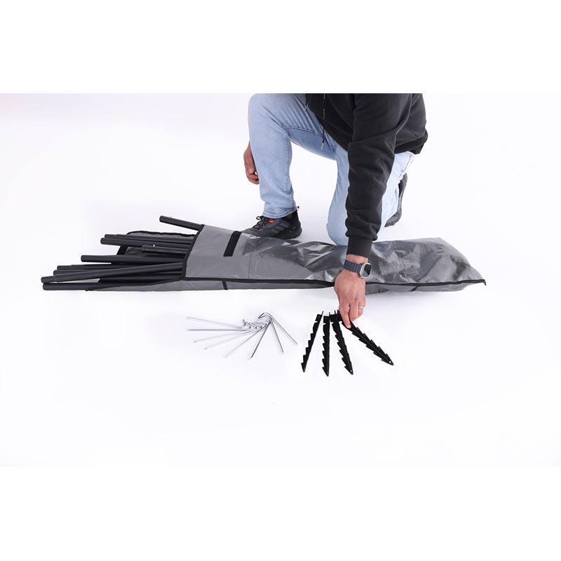 وجود این تجهیزات باعث میشود سایبان بر روی خاک، چمن، ساحل و زمینهای سنگی به خوبی نصب و پایدار بماند.