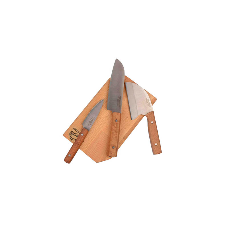 مجموعه کامل و کاربردی – وجود چند چاقو، ساطور، تخته برش و ابزار جانبی باعث شده این ست برای آشپزی روزمره و کمپینگ مناسب باشد.