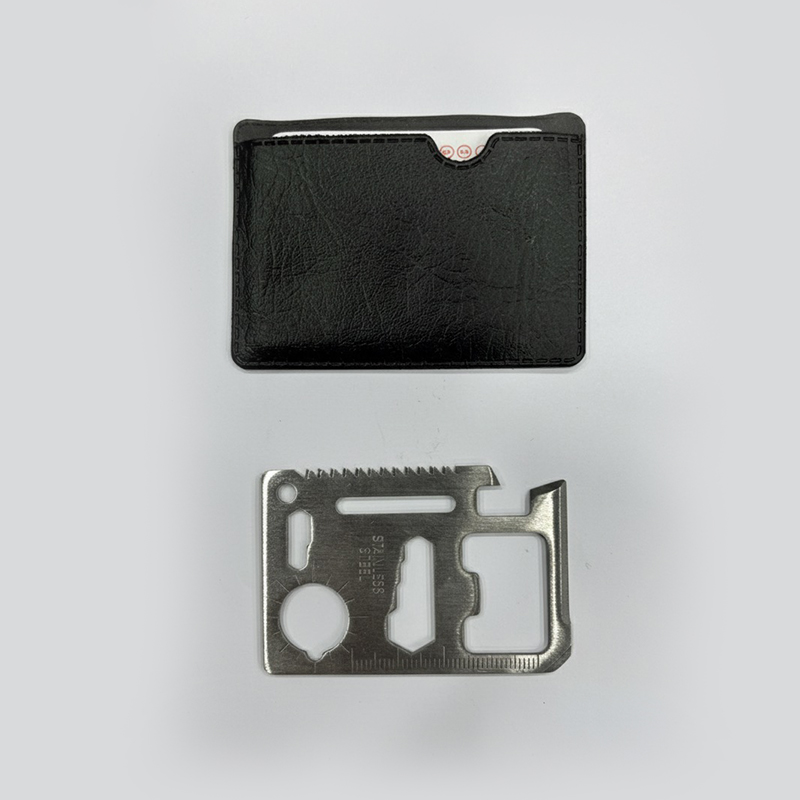 ابزار کارتی این کیت، شامل چندین کارکرد مختلف است و در یک کاور چرمی باکیفیت قرار گرفته. این ابزار برای بریدن، باز کردن، اندازهگیری، تعمیرات سریع و بسیاری از نیازهای لحظهای سفر بهکار میرود.