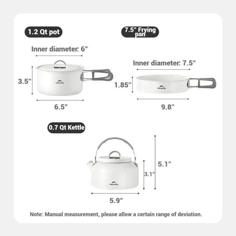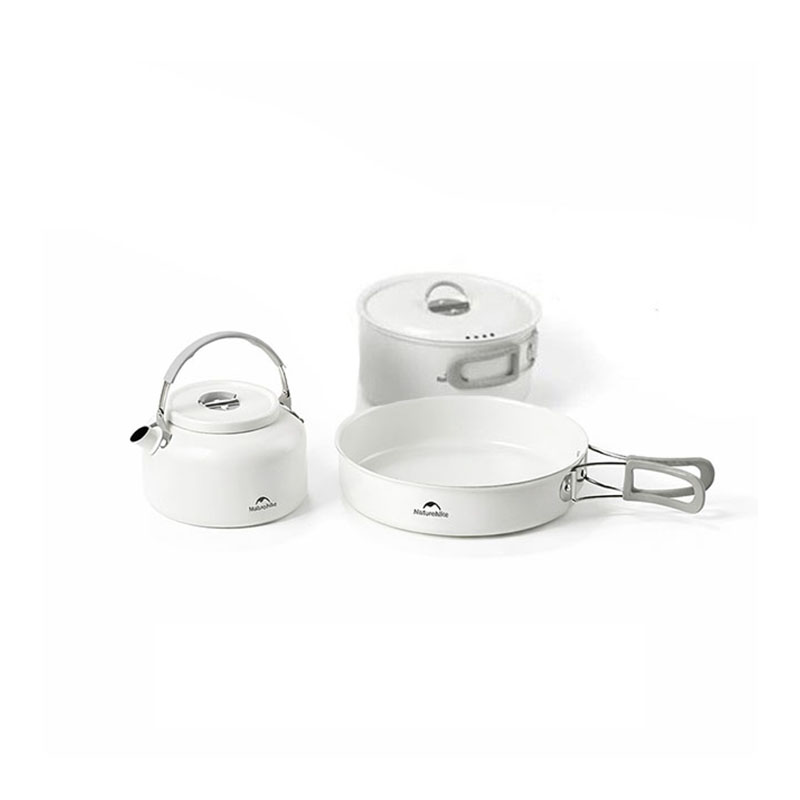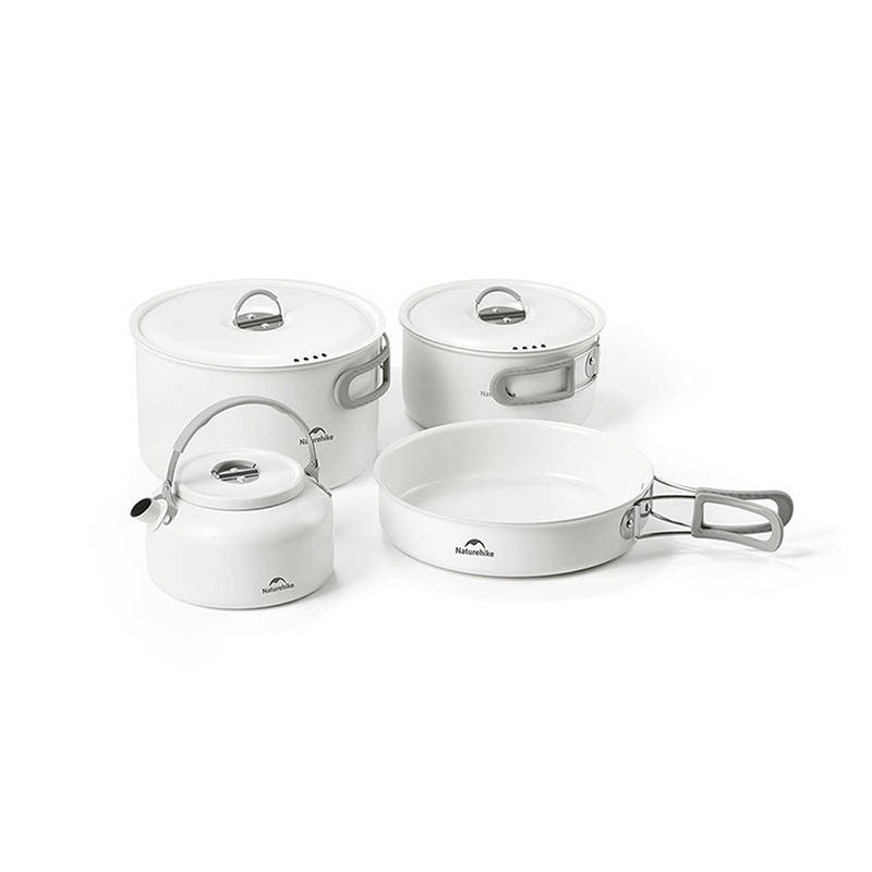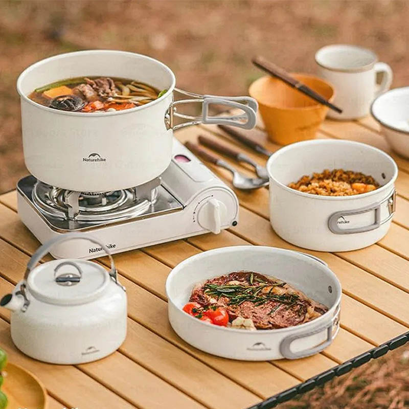 طراحی هوشمندانه: شامل قابلمه، ماهیتابه و کتری با اندازههای مناسب برای استفاده گروهی یا فردی