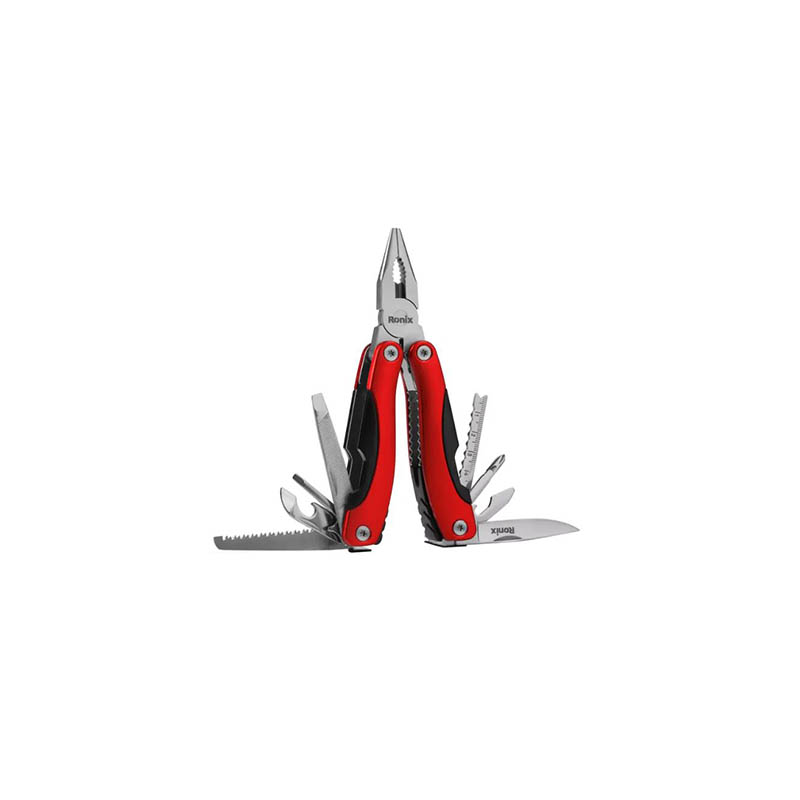 انبر تاشو رونیکس RH-1191 در حالت بسته تنها ۱۰۰ میلیمتر طول و حدود ۲۳۸ گرم وزن دارد، بنابراین بهراحتی در جیب، کیف ابزار یا کیف همراه خود قرار میگیرد. این ابزار شامل مجموعهای کامل از ابزارهای ضروری است، از جمله انبر نوکباریک، سیمچین، چاقو، اره، سوهان، دربازکن بطری، دربازکن کنسرو، خطکش کوچک، و انواع پیچگوشتی تخت و چهارسو. هر یک از ابزارها بهصورت تاشو درون دسته جای گرفتهاند و با مکانیزم قفل ایمن، هنگام استفاده یا حمل، کاملاً محکم و بدون خطر باز شدن ناگهانی در جای خود ثابت میمانند.