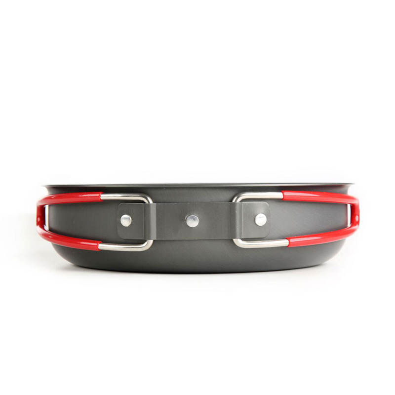 دستههای ظروف از جنس عایق حرارتی طراحی شدهاند تا در برابر شعله مستقیم نسوزند و هنگام استفاده داغ نشوند. قابلیت تاشدن دستهها باعث کاهش حجم و جایگیری بهتر داخل کوله میشود.